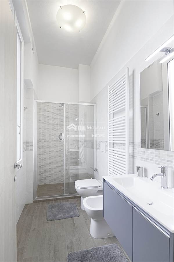 Recentemente ristrutturato e arredato modernamente è cosi composto: ingresso, cucina abitabile , ampio soggiorno con tre finestre e balcone, una matrimoniale, una camera doppia con cabina armadi, bagno con doccia e ripostiglio ad uso lavanderia.