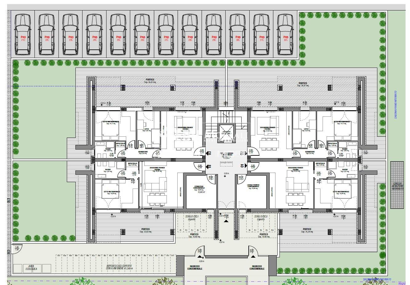 Possibilità di scelta tra diversi garage e posti auto a parte nel prezzo.