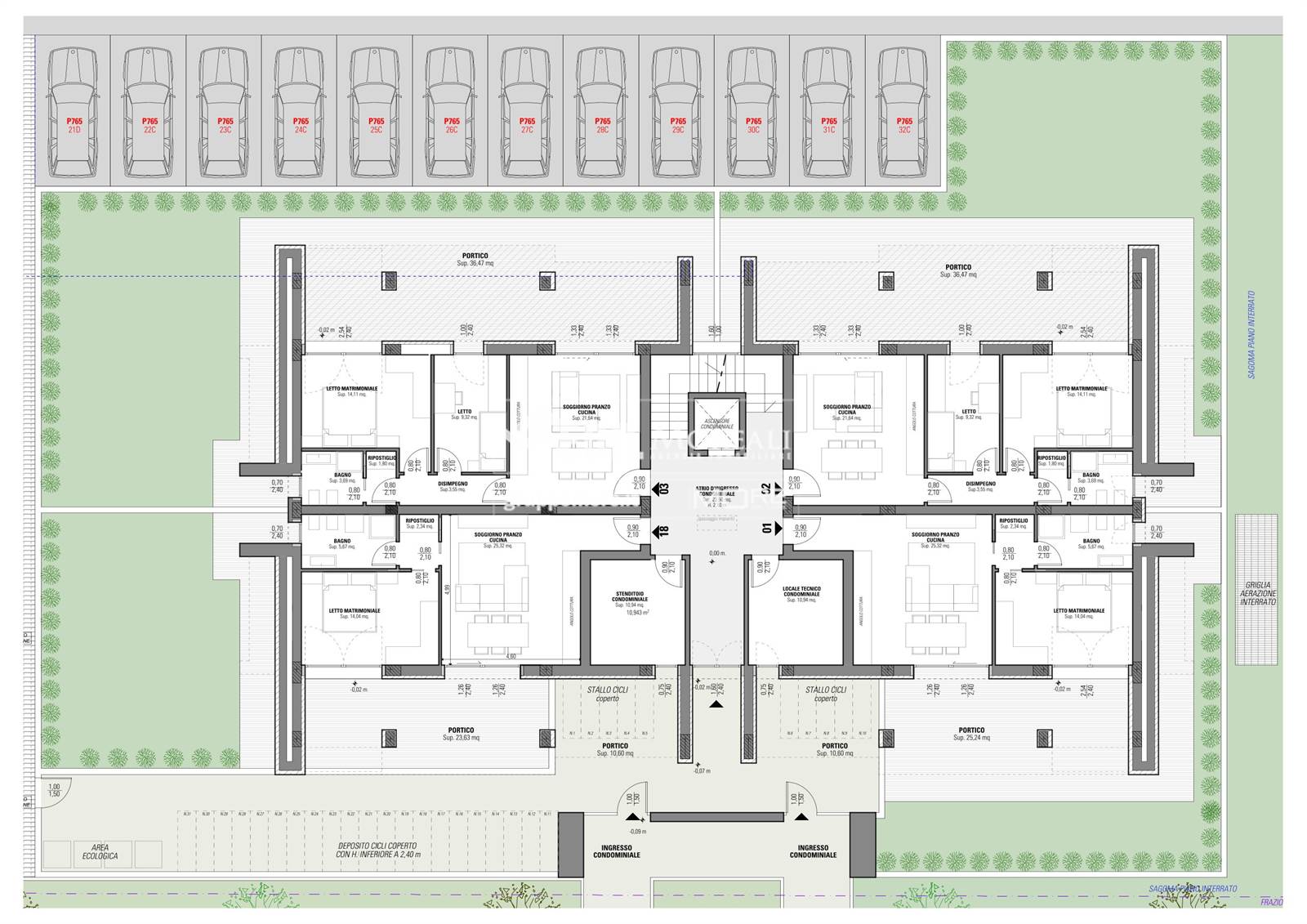 Possibilità di scelta tra diverse autorimesse e posti auto interni a parte nel prezzo.
