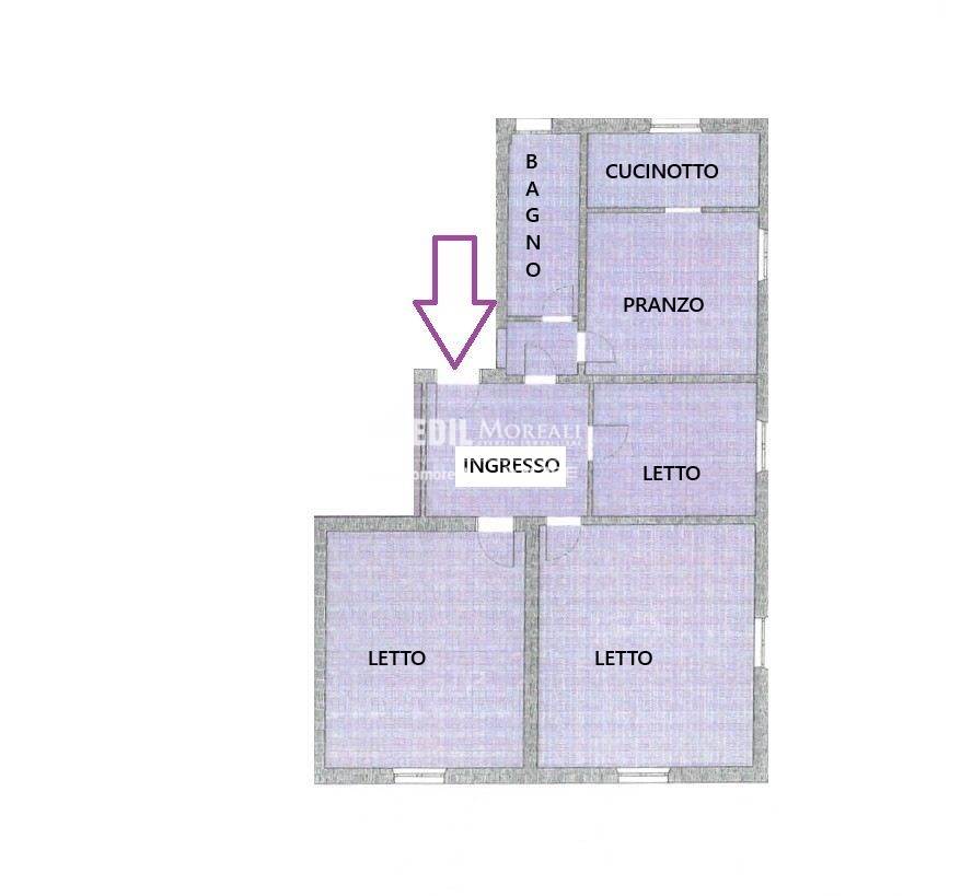 Immobile in buone condizioni, volendo abitabile e semi-arredato, così disposto: ampio ingresso, cucinotto, tinello, due grandi camere matrimoniali, una camera singola e un bagno finestrato (possibilità di creare ampia zona giorno incorporando la camera singola).