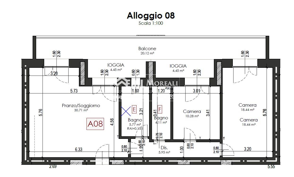 vendesi appartamento "8" al piano secondo con ascensore, di 97 mq. e loggia coperta di 32 mq.