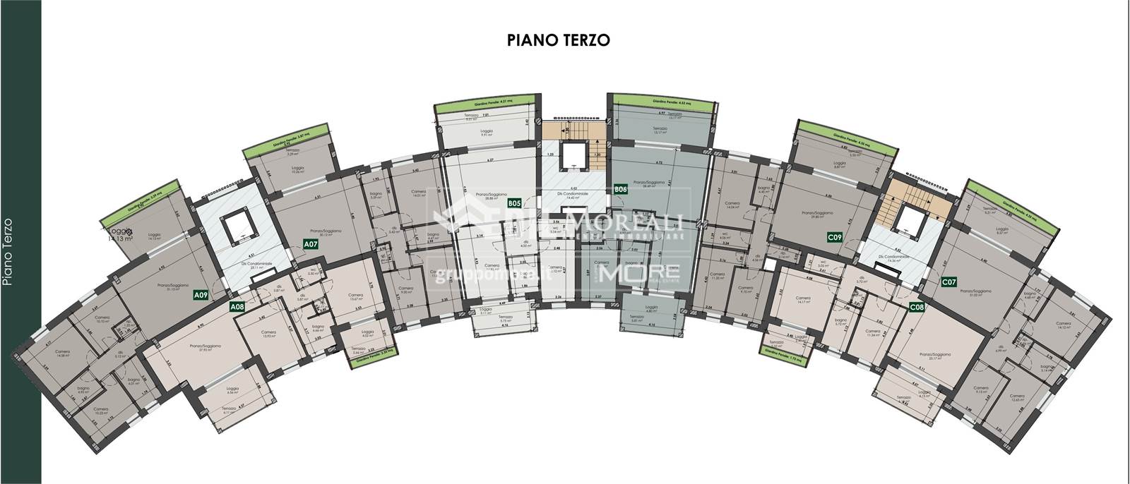 MO867_C8 Nostra esclusiva, Via del Mercato, comparto Ex Mercato Bestiame, in palazzina nuova (Classe Energetica A4-NZEB) vendesi attico "C8" al piano terzo ed ultimo con ascensore, di 91 mq., dotato due logge coperte e giardino pensile.